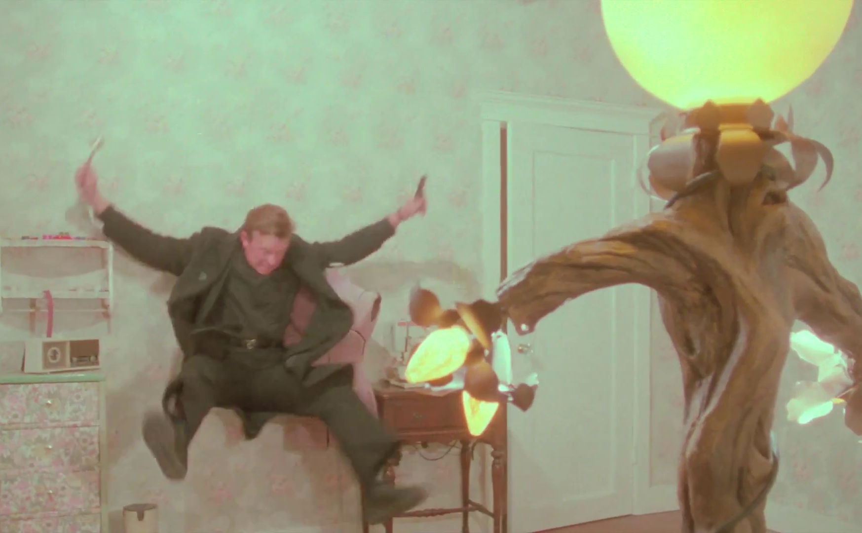 The lamp itself is a contender for the most unlikely horror villain ever imagined, the fact that the director does everything in his power to lend the inanimate object a malicious presence just priceless. I mean, he really gives it his all here. If you prick your finger on the lamp, it’ll turn black and you’ll grow sick and die in the most sudden and ludicrous fashion (seriously, this has to be a contender for the worst attempt at onscreen death ever captured). Mock its appearance and it’ll find a MacGyver-esque way to take you out. When the housemaid grows semi-suspicious and tries to sell it, it’s goodnight Vienna. The cat senses and hates the infernal appliance. Flies seem to love it. It really is a truly diabolical… household lamp.