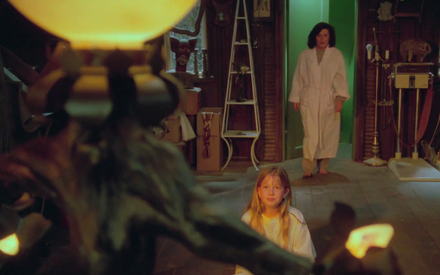 The plot is a simple one: following a seemingly successful group exorcism, the newly transferred evil ends up at a garage sale where an elderly woman spies the lamp and ships it off to her sister Alice (Jane Wyatt) in California. This unexpected gesture happens to coincide with the recent death of Alice’s son-in-law, leading her estranged daughter and two children to move back in with her as they attempt to readjust, which as you can probably imagine plays right into the lamp’s hands (it has them, remember).
