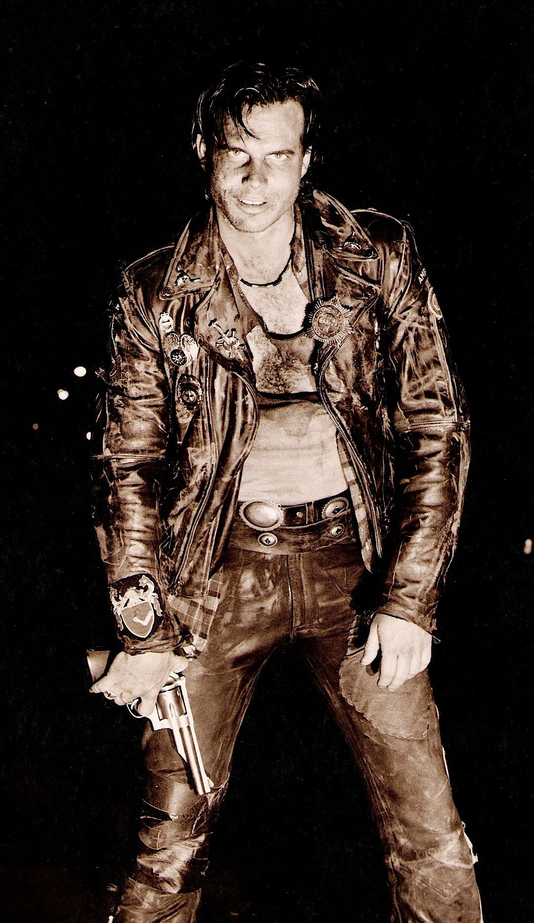 Near Dark is a stylish hybrid movie that fused the muscular revisionist-western ethos of early Arthur Penn with the romantic vampire vibe of traditional Gothic horror cinema. Ditching the unfashionable genre motifs of holy water, crucifixes and garlic in favour of a fairly atypical depiction of rootless, diseased and entirely plausible predators, Bigelow’s vamps, bound together by the need for survival but forgotten by history and disavowed by society, were as unconventional a vampire horde as any that had gone before. Sociologically peripheral and feeding at the boundaries of civilization, where criminality masked their activities, allowing them to function undetected, these vampires would just as soon as stick a knife in their victims as stare into their eyes to hypnotize them with glamour.