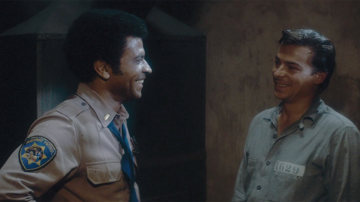 Casting the film was a similarly humble process. Carpenter would add experience while maintaining an authentic and anonymous vibe by casting knowledgeable, yet relatively unknown actors, the film’s central roles going to blaxploitation star Austin Stoker, who had starred alongside Pam Grier in Sheba, Baby a year prior, and the even lesser-known Darwin Joston, a TV regular who just happened to be in the right place at the right time (Joston was actually Carpenter’s real-life neighbour). In the tradition of movies such as 1958’s The Defiant Ones and 1967’s In the Heat of the Night, which paired revolutionary black actor Sidney Poitier with Tony Curtis and Rod Steiger, respectively, the two would combine to form one of the earliest, most iconic biracial buddy partnerships in action cinema, long before Hollywood turned black and white into a calculated trope. While The Defiant Ones told the story of two convicts and In the Heat of the Night two cops on different sides of the racial divide, Assault on Precinct 13 lands somewhere in the middle, further muddying convention and raising ethical questions. Unlike the deluge of like-for-like pairings that would follow, Stoker wasn’t presented as the servile sidekick and reduced to second billing. He and Joston were very much on an even keel.