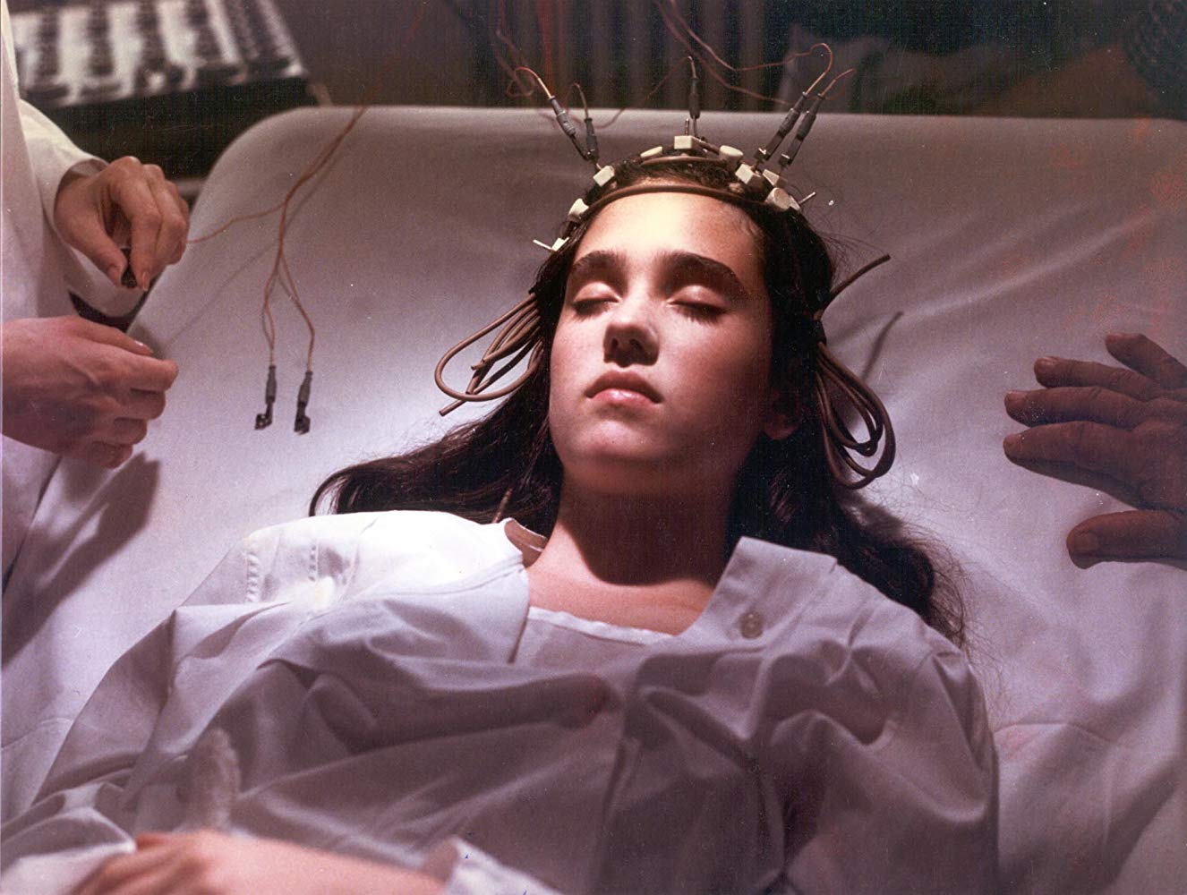 Phenomena, inspired by the fact that insects are sometimes used to establish a murder victim’s time of death, is typically potty. Jennifer Connelly plays Jennifer Corvino, a young girl with a rather special affinity with the insect world whose powers are used to unravel a series of unexplained murders in and around a Swiss boarding school. Her telepathic abilities soon grab the attention of wheelchair-bound forensic entomologist John McGregor (Donald Pleasence), leading her on a path of macabre splendour that becomes progressively erratic and as a result increasingly beguiling.