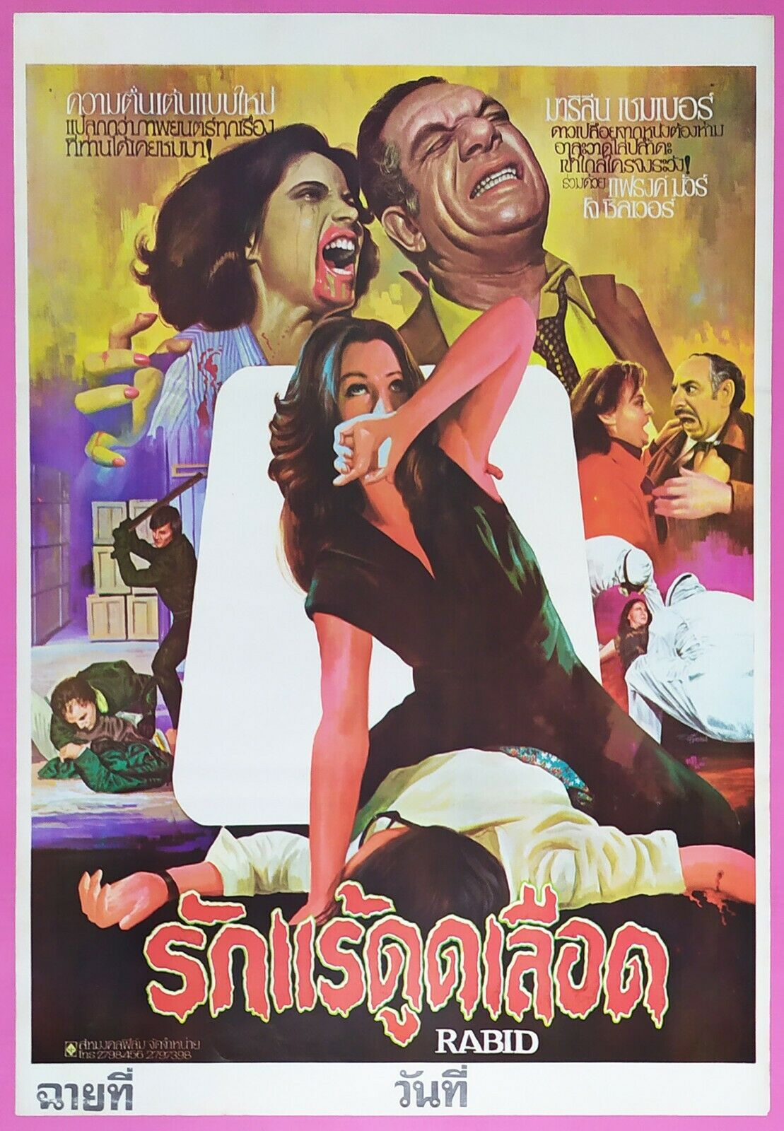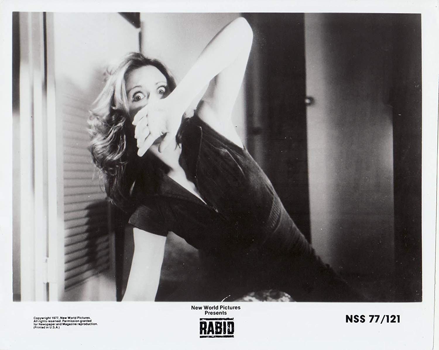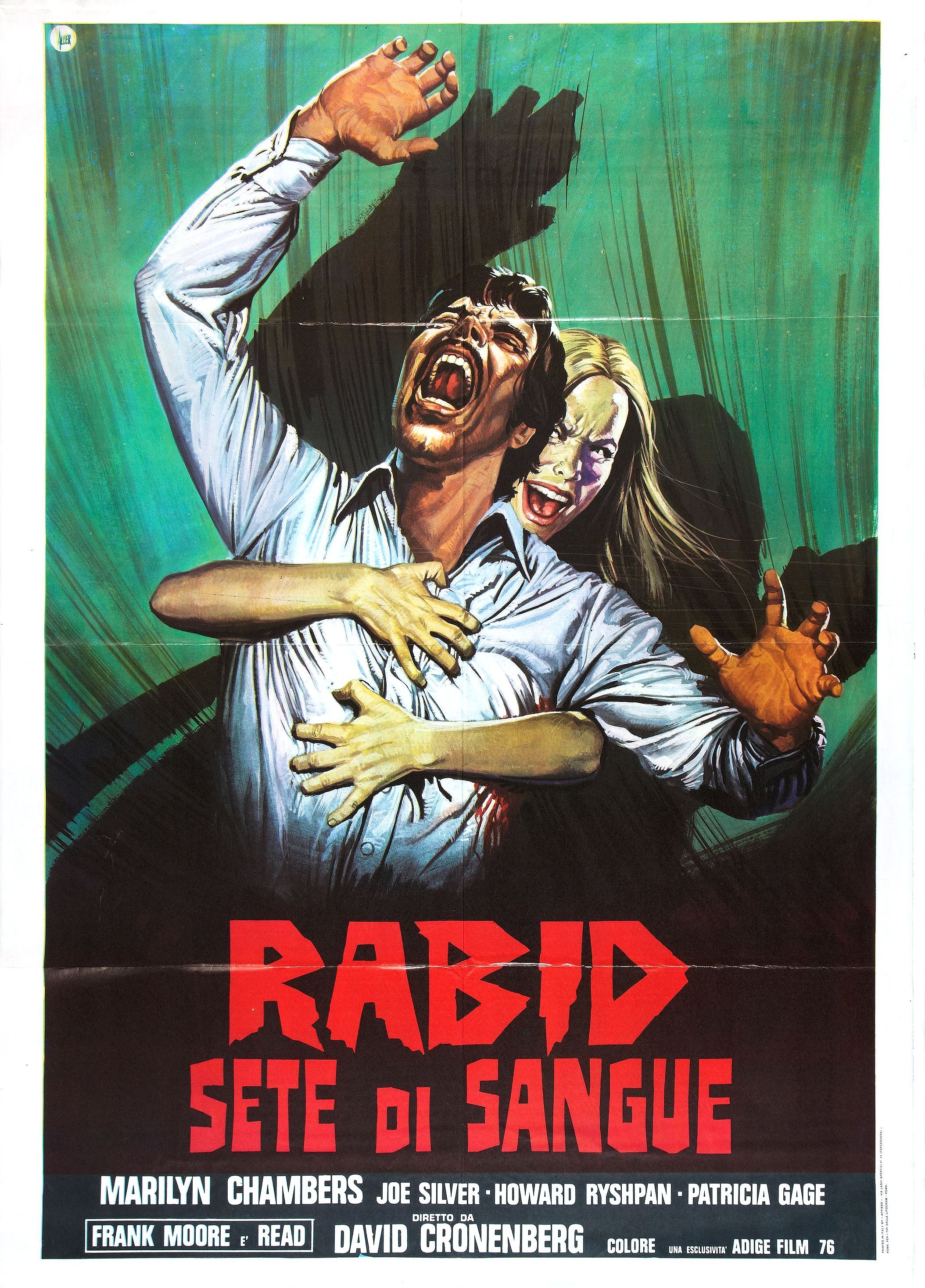 Cronenberg and Reitman had to piece together financing for their next picture on the open market, which took close to two years. Rabid, released in 1977, uses the entire city of Montreal as the backdrop for a plague that turns its victims into bloodthirsty savages. The story features a woman, Rose, who after surviving a horrible motorcycle accident, is given an experimental skin grafting treatment that somehow gives her a thirst for human blood. Every victim she attacks becomes infected with the same disease, which rapidly spreads from the quiet countryside to downtown Montreal.