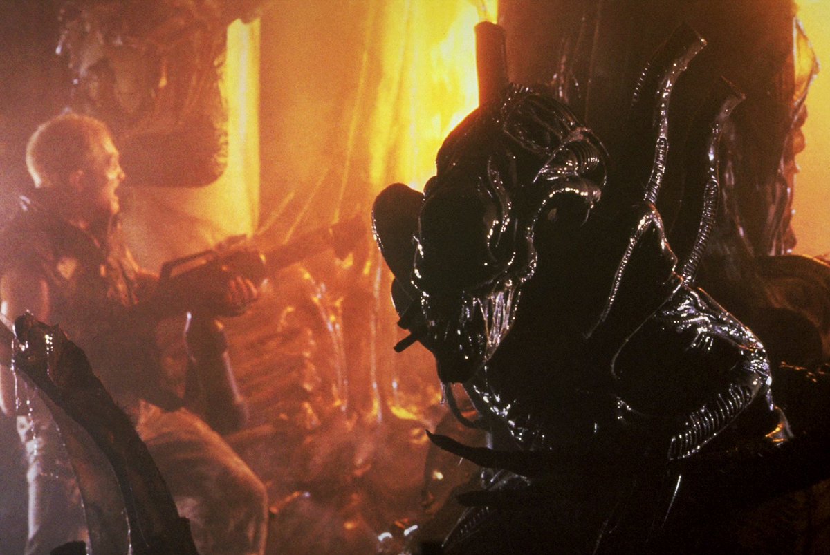 There’s a case to be made for the idea that upping the ante on both sides, something that Terminator 2 would also do, cheapens the xenomorph by making them more disposable and ultimately less fearsome, but we see another side to the creature when viewed as part of a whole colony, one that that makes them just as terrifying: the idea of a hive mind. Faced with an army of lock ‘n load space marines, the xeno, once a solitary hunter with the moral capacity of a particularly lethal insect, show solidarity and a willingness to sacrifice themselves for the greater good; like a colony of ants, they’re selfless, industrious and wired to adaptation.