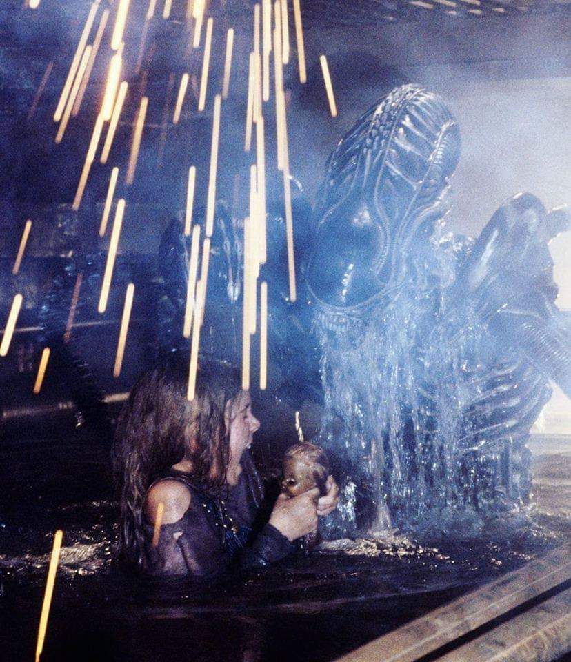 Despite their do or die approach in Aliens, the xenomorph overcome the tactical expertise of Ripley’s comrades with a formidable mix of patient savvy and reckless abandon. There is one specific moment where a particularly sly xeno creeps up on the lost and lonely Newt, literally drooling at the prospect of her capture and emerging from the water in the kind of ‘he’s behind you’ shot you’d expect from John Carpenter’s Halloween. It’s the seeming omnipresence of the hive mind and the isolation of space, both inner and outer, that proves key to the xenomorph’s power and the power of horror in general. Despite his bigger is better approach to the source material, Cameron expands our understanding of the xenomorph in a way that strengthens its legacy as a horror creation rather than detracting from it.