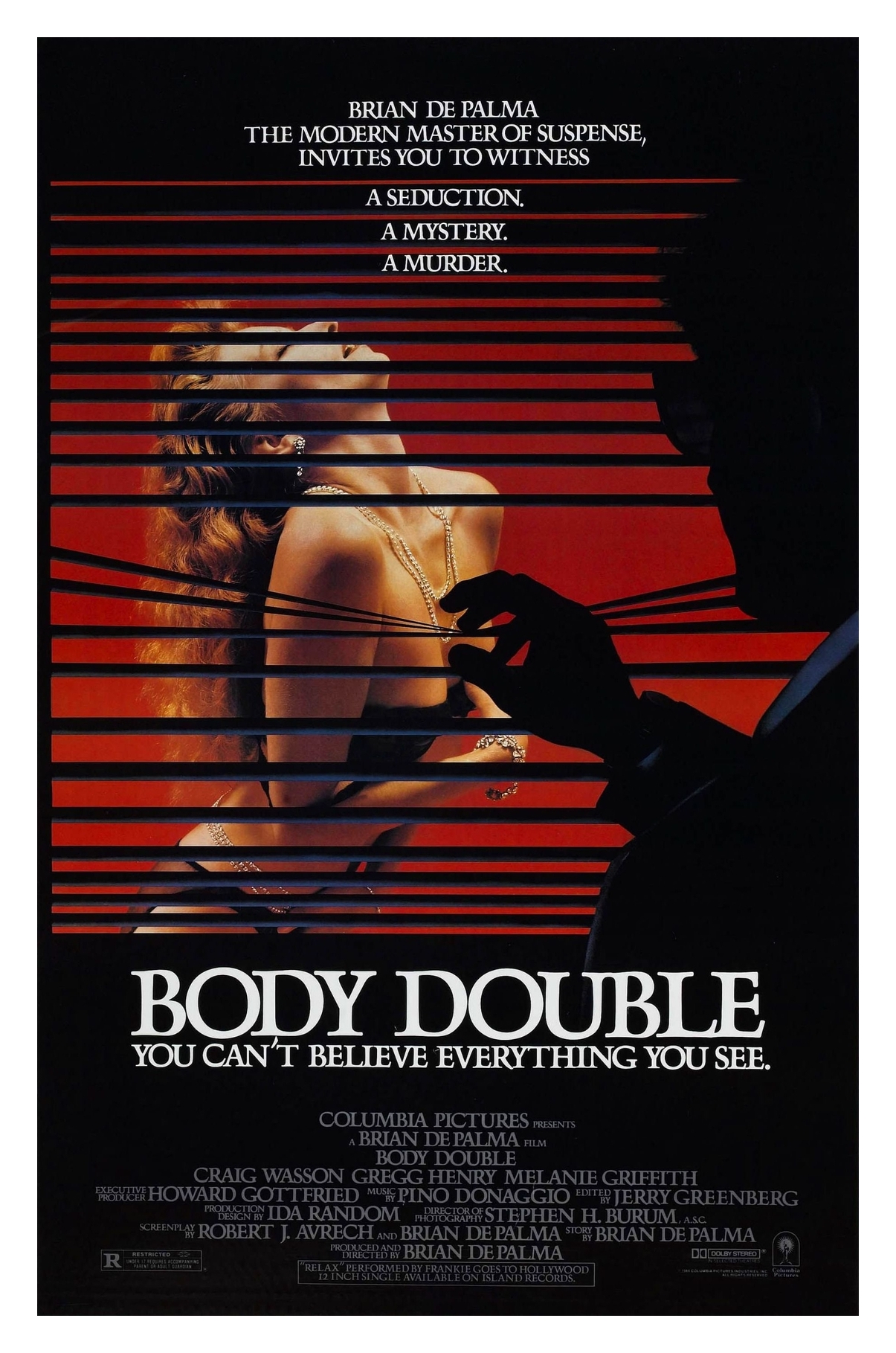 The movie stars Craig Wasson as Jake Scully, a struggling actor with a history of alcohol abuse who falls off the wagon after catching his adulterous wife red-handed. Scully is struggling on the bottom rung of Hollywood when a fellow thesp offers him temporary accommodation in a wealthy contact’s apartment, a futuristic building with the towering, unreal presence of the Bates mansion. As an extra treat, unexpected saviour, Sam Bouchard (Gregg Henry), offers Jake the pleasures of the apartment’s telescope, giving him a perfect view of a sultry neighbour who performs an erotic dance each night after returning home. Wasson quickly becomes obsessed with the beautiful stranger, particularly when he notices a second man stalking her, but since he can be accused of the very same crime, he has no choice but to take matters into his own hands and quickly becomes a convenient pawn in an unreal mystery with so many twists and turns it would be a crime to reveal them.