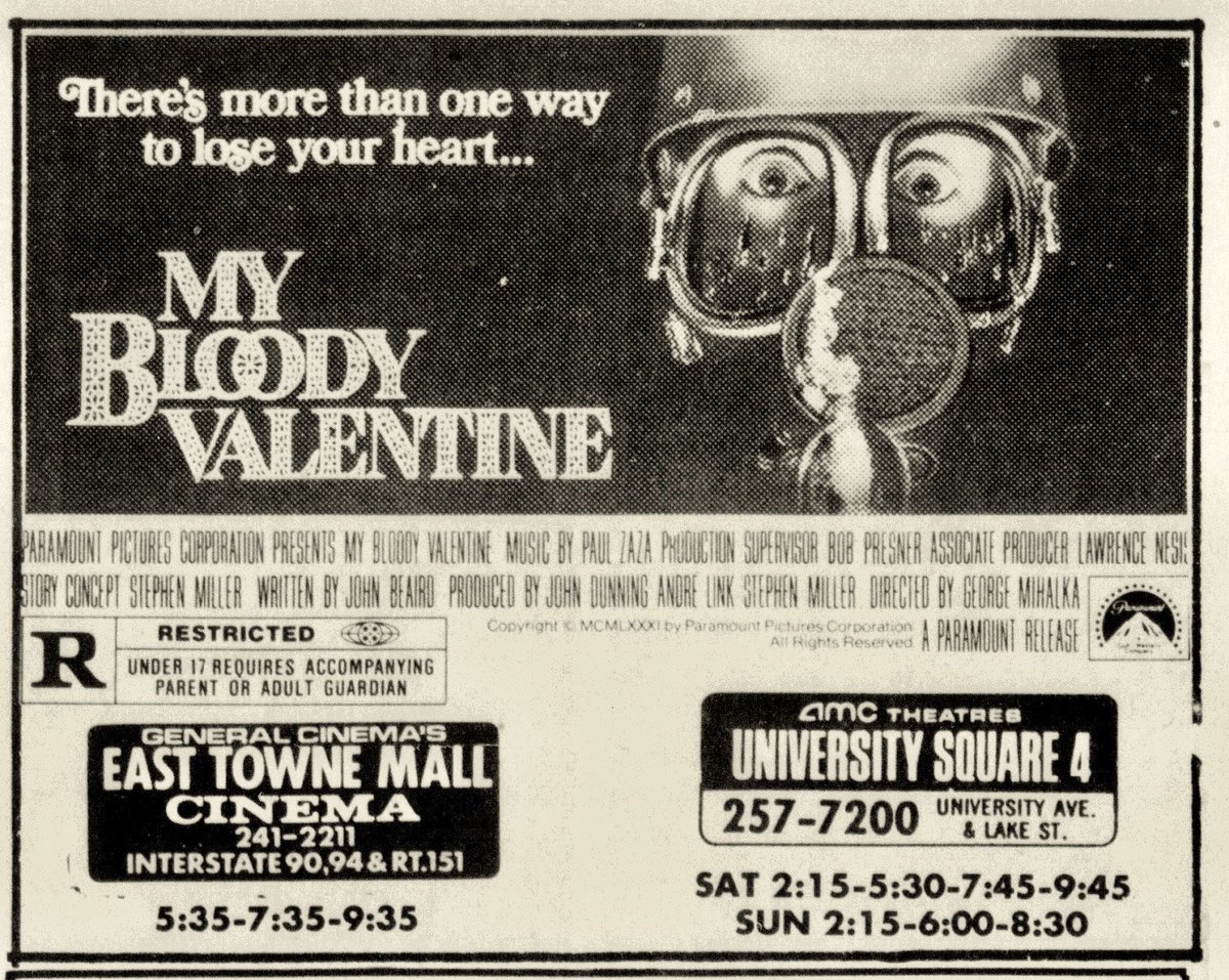Paramount were keen on picking up My Bloody Valentine for national distribution provided they could get it out in time for Valentine’s Day, which proved challenging given the technology at their disposal. As Mihalka would explain, “We had to be ready to open in 1,200 theaters across North America… it was one of the largest openings… One of the reasons that we were able to do it is that we didn’t know any better. We just figured we were good and smart enough technicians… and we were good enough organizers and filmmakers. Just because everybody else thought it was really tight and almost impossible, that just put more fire underneath us. ”