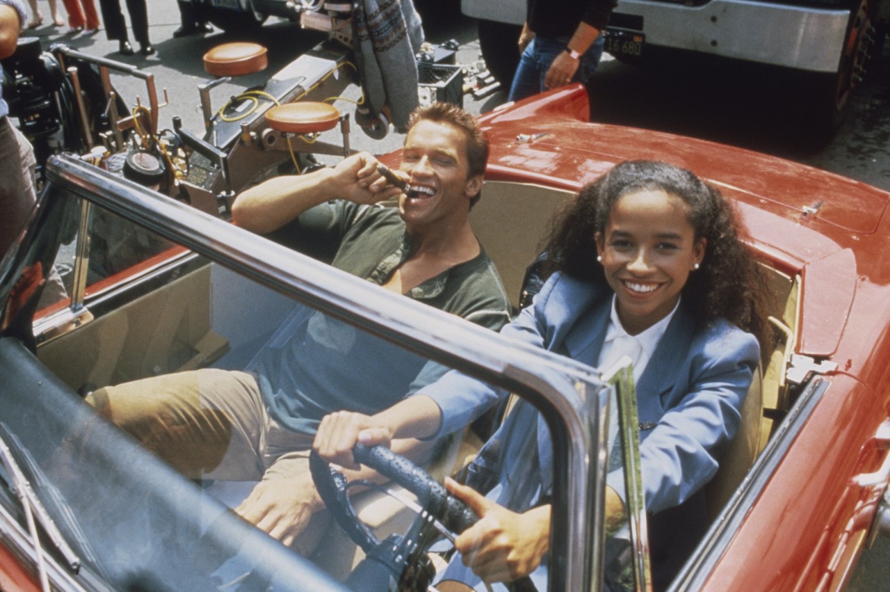 “We saw dozens and dozens of your typical beautiful blonde actresses for weeks trying to find somebody who could play opposite Arnold. We read everyone you could imagine, and the scenes would just lie there flat. Then there were a lot of actresses who didn’t even want to act with him, because they thought they were too prestigious. I never heard of any of them again,” Lester recalled. “By the time [Rae Dawn Chong] came in we just about hired her on the spot, because we finally had someone who brought real comedic flair to the part. We had to cut the love scene though – originally there was a sex scene between her and Arnold, but in those days the Southern theatres wouldn’t play a movie if it had interracial sex, so that was out.”