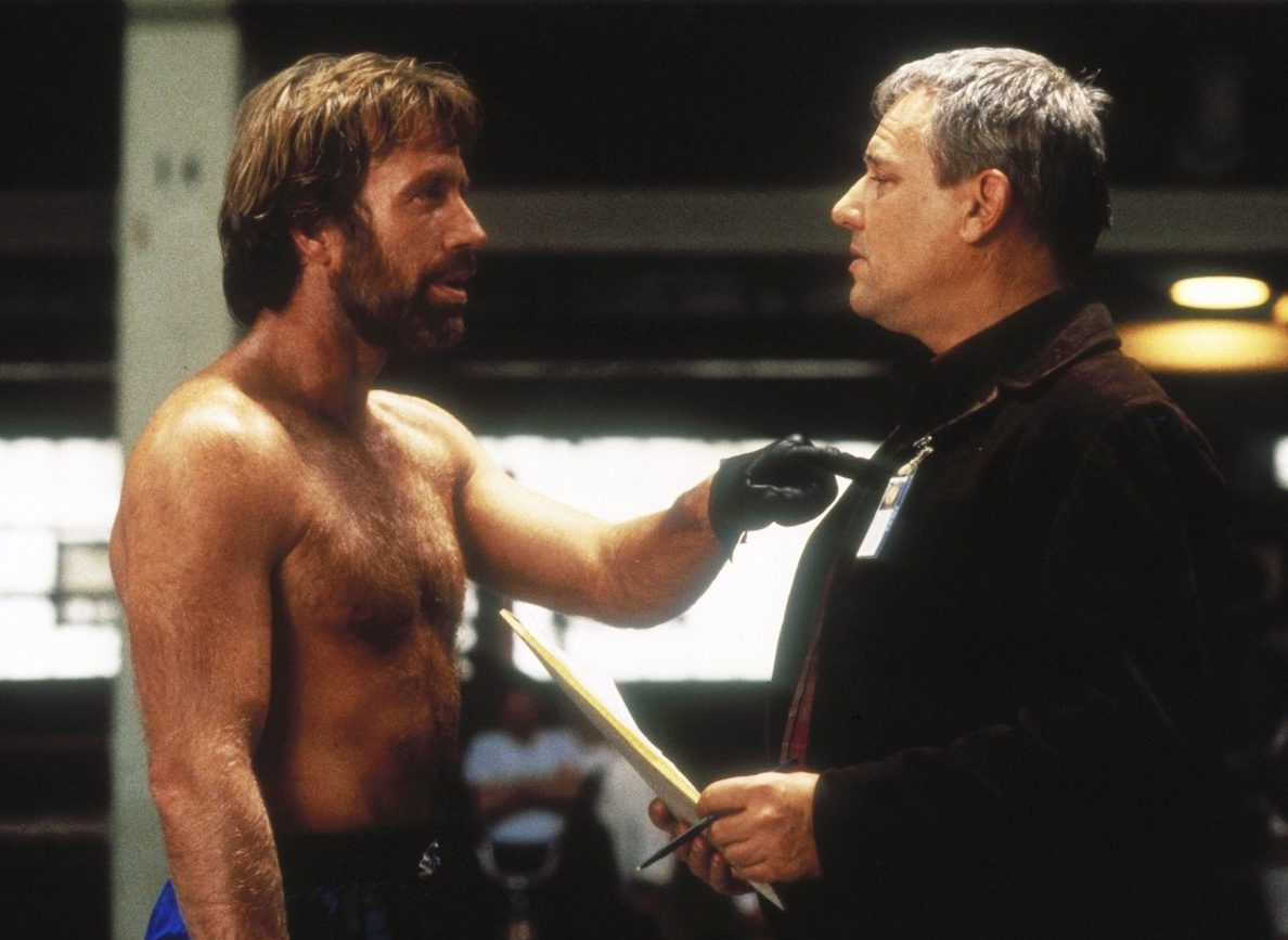 At no point in his first ten pictures did Norris do more than smirk or squint, but his poker face cast some kind of anti-charismatic spell, with him barely registering the presence of other actors, loaded guns or the mobs of henchmen trying to kill him. So Davis was well aware of Chuck’s limitations.