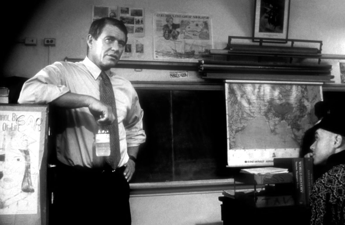 The Substitute is deeply condescending, startlingly so, even for an exploitative picture of its nature. The fact that an authoritative Republican mouthpiece with a history in the armed forces can change the entire outlook of deeply institutionalised gangbangers in a matter of days is not only ludicrous and offensive, but also damaging, providing easy, black and white solutions for deeply complex social problems, the kind that are sustained through a system of enforced financial disparity and media-spun bias. There’s an utterly oppressive moment when token-black-kid-on-the-right-path, Jerome, later installed as temporary class teacher on the basis of very little, poses the extremely valid question, “What we supposed to do? Work in some fast food joint making some minimum wage?” to which Shale poses the question, “Better than a gang funereal, isn’t it?” Accept mediocrity. Embrace slavery. Struggle in silence. Message received.
