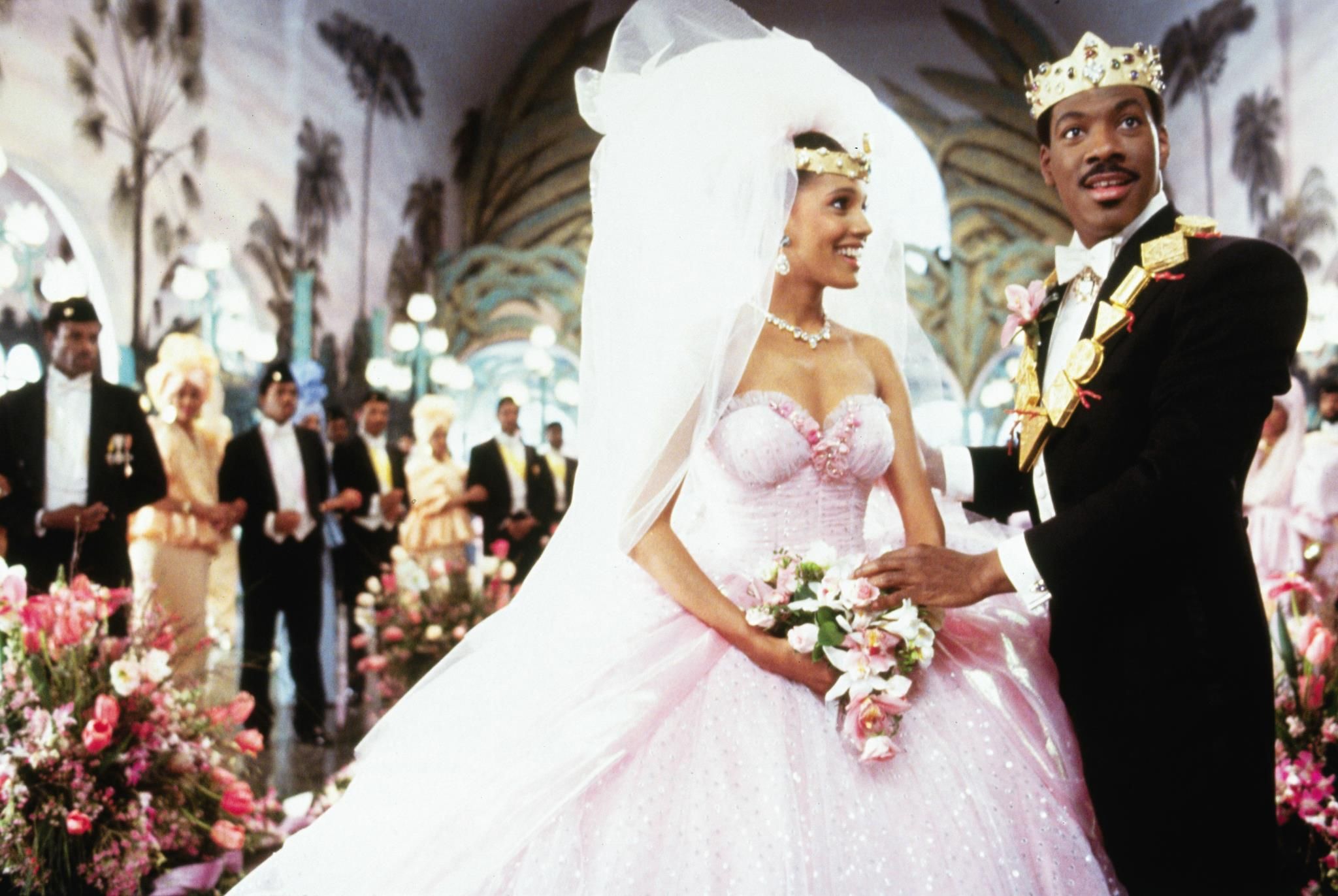Part of the film’s resolve is down to Murphy’s untypically controlled performance. Sure, he gets to let off steam as a barber extolling the virtues of black history — in fact, he practically whistles at the ears — and Akeem is afforded the odd comical flourish, but here Murphy takes on the role of sensible man in absurd environments, first one of obscene privilege and even zanier expectations, and then in a society to which he is so alien he can barely operate a mop. Instead of triggering the comedy with the outward bravado of a character like Axel Foley, Akeem is often the butt of the joke. It’s one thing hiding poverty from a potential spouse, particularly when her father, your boss, wants the absolute best for his princess, but when you’re trying to hide your wealth, the irony is palpable, and Murphy is a first class pawn.
