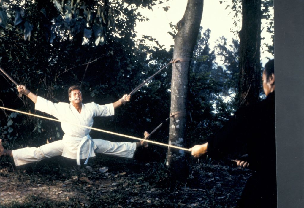 It is here that Bloodsport becomes a gloriously watered-down version of Enter the Dragon, a film that was transformed into a caricaturistic James Bond clone following concerns that Lee couldn’t hold a picture on Western shores (John Saxon was famously brought in to take on the quasi-007 mantel). The tournament itself is a carbon-copy save for the fact that it’s indoors secretive rather than taking place on a remote island. It has a Hong Kong setting, a comic relief moment involving sampans (those little wooden boats), the same camera angles and slow-motion techniques used to immortalise Lee, and not one, but two cast members of note playing almost identical roles: Yeung, who played beefy henchman Yang Sze in Enter the Dragon, and Roy Chaio, who plays a fictional mentor to both protagonists.