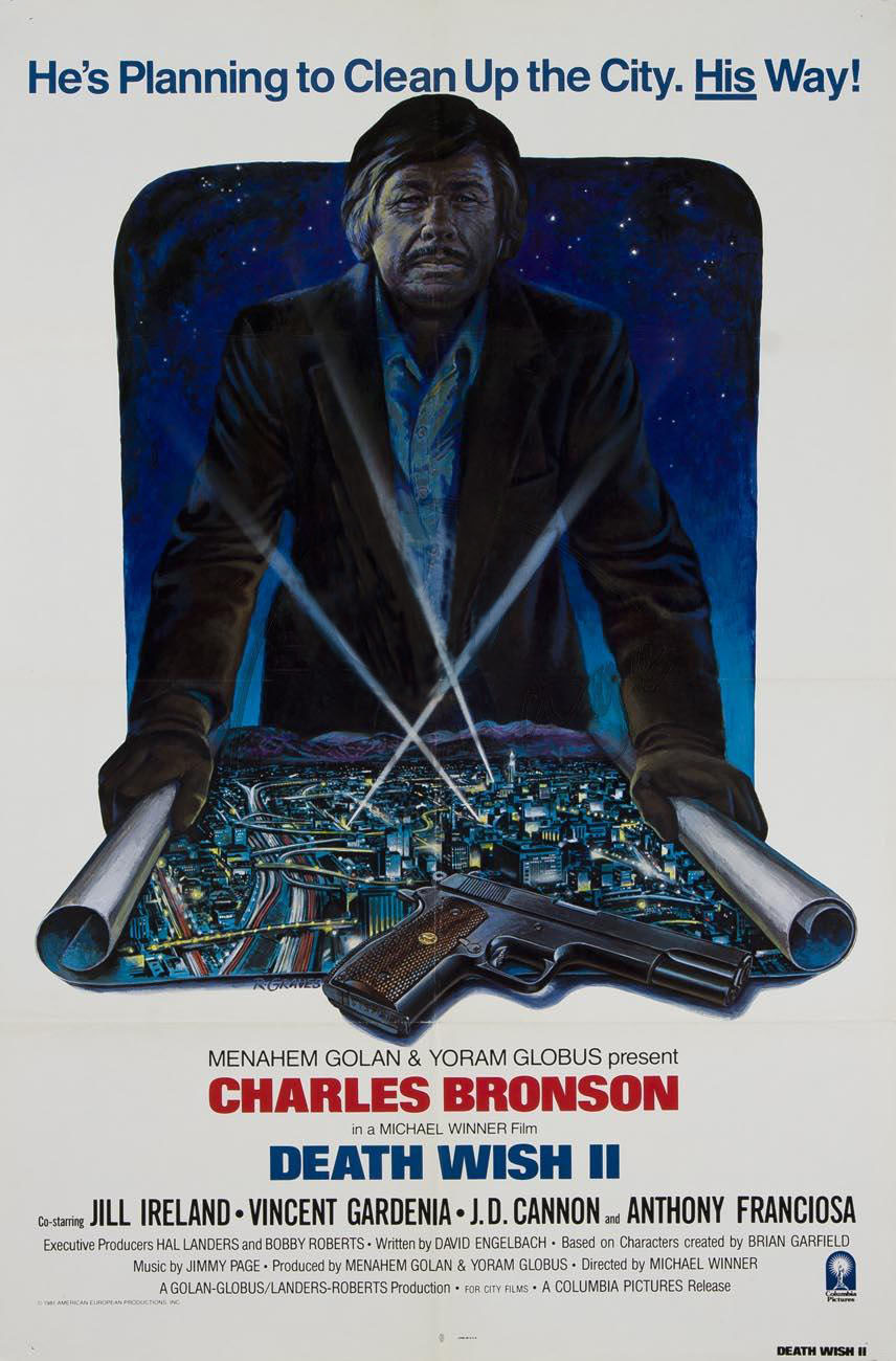 Of all those stars, past and present, who were tempted by Cannon’s unbridled sense of ambition, it was an aging Charles Bronson who first took the bait. Golan-Globus had Death Wish in mind before their prospective Cannon buy-out, and after purchasing the rights to the series turned to veteran director Winner, their controversy-creates-cash mantra the perfect antidote for his flailing career. After a string of underwhelming efforts, including 1979‘s Firepower and a badly received remake of Raymond Chandler’s The Big Sleep, a new commercial modus was required if Winner was to become relevant again, and Cannon had just the ticket. He and Bronson had a history together that went beyond the original Death Wish, the two collaborating on a total of six movies, but it was the controversial Kersey who Cannon craved, the pair managing to bag Bronson and Winner at just the right time.