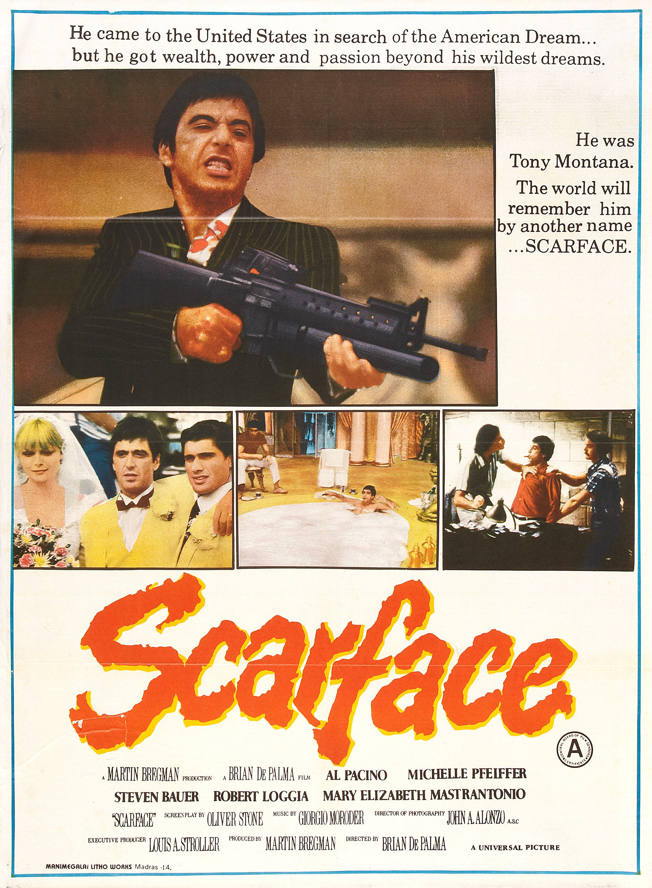 In the ensuing years, the Montana character would become something of a cultural pariah, his adoption as the poster boy for mainstream hip-hop, a genre that wore greed and materialism like a diamond-studded gold tooth, cheapening the film’s message in the eyes of many. Right or wrong, for many Montana has become an iconic figure, a source of inspiration in their own pursuit of the American Dream. Perhaps those people missed the point entirely, but what they surely admired was the honest, balls-out nature that drove one of the most emblematic characters of the decade, and the code of honour for which he was willing to pay the ultimate price.