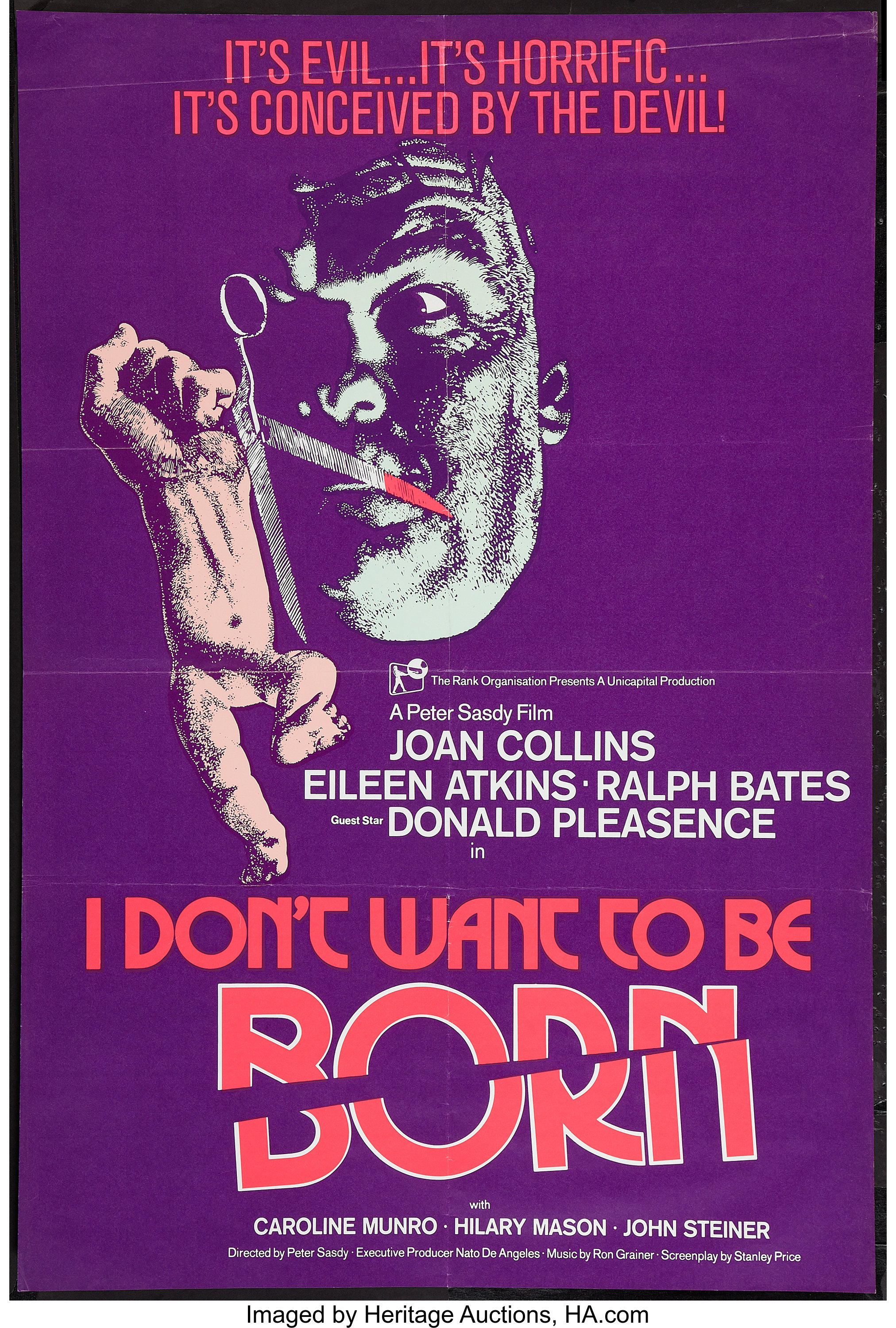 The Devil Within Her was released and re-released under a multitude of titles, none of which accurately describe the story, other than the elegantly straight-forward French version, Evil Baby. It is listed on IMDB under the title Sharon’s Baby. No one in the movie is named Sharon.