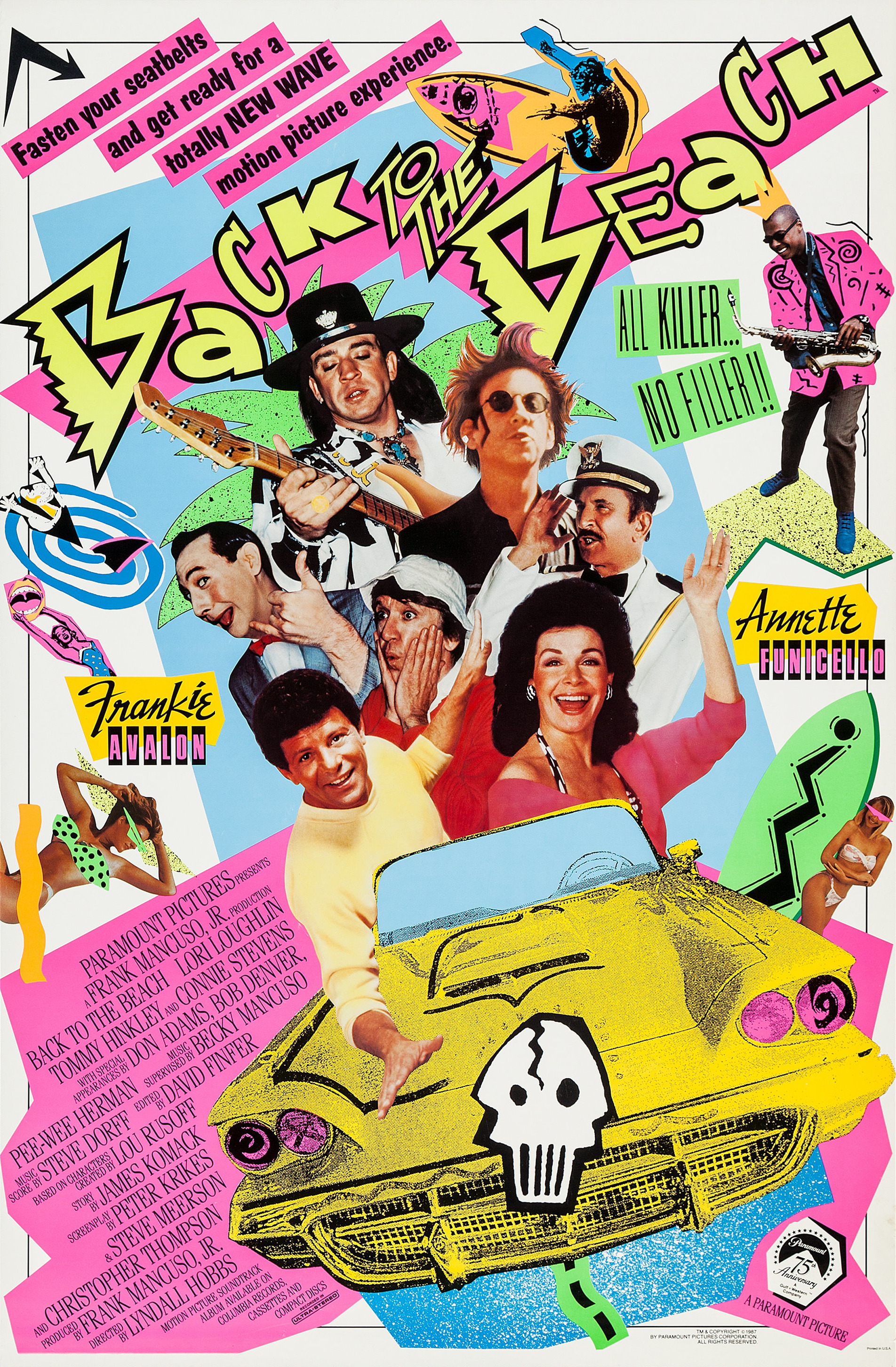 As well as featuring hits performed by Avalon himself, the Back to the Beach soundtrack included hits from such musical luminaries as Eddie Money, Stevie Ray Vaughan, Herbie Hancock… and Peewee Herman. It was also rather well received, qualifying for the famous two thumbs up from Gene Siskel and Roger Ebert, who favourably compared the movie to Grease.