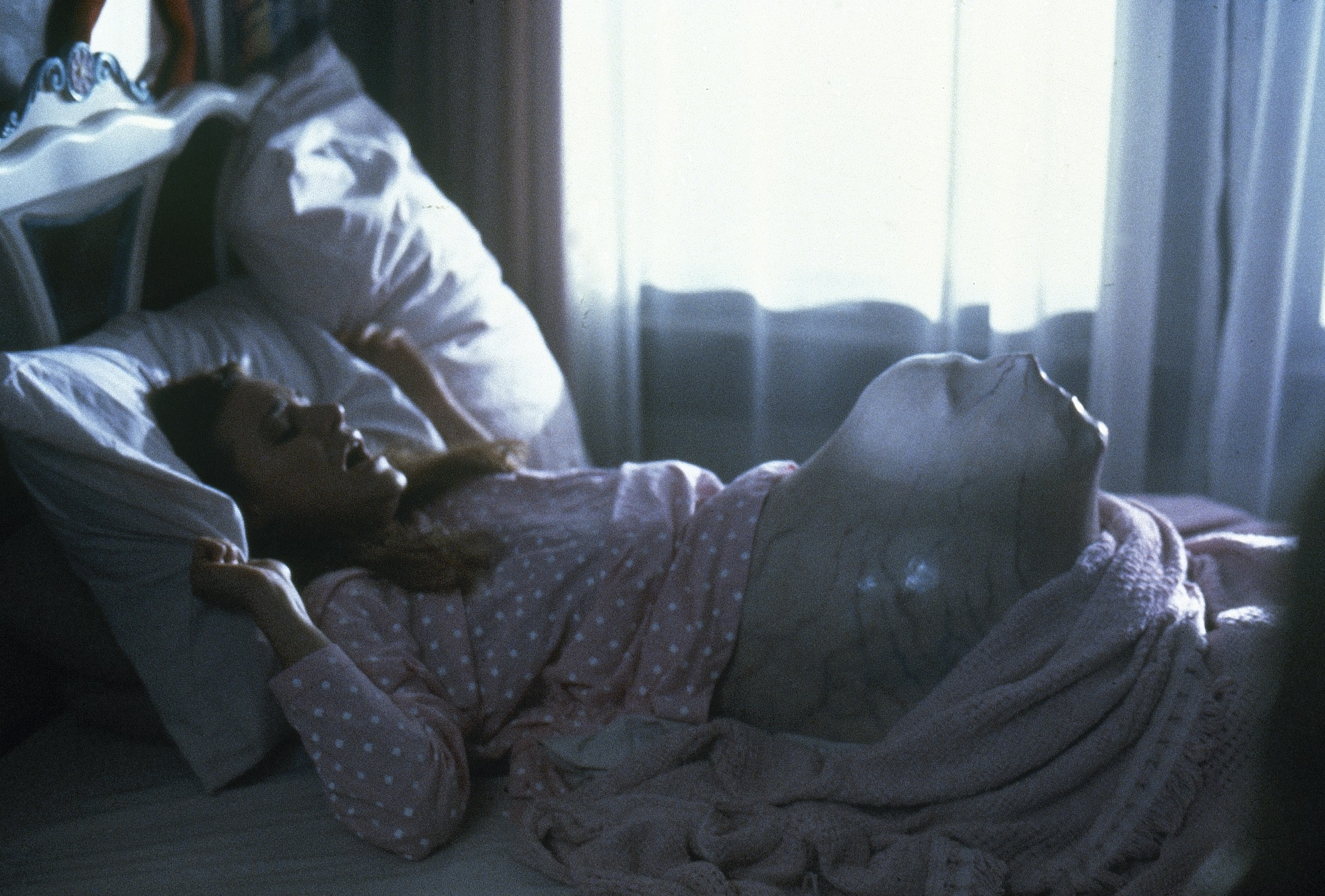 There are also a series of what appear to be daydreams that act as a platform for the film’s Freddy-esque practical effects sequences, most of them lifted directly from the series at large, like the moment when Jenke turns into the family’s dinner table turkey, or the scene with the phantom pregnancy of McCarthy’s daughter. That particular set-piece is almost identical to one featured in A Nightmare on Elm Street Part 2: Freddy’s Revenge, the moment in which an impression of Krueger appears in Jesse’s stomach. It stops short of our killer shedding his victim’s skin like a silk gown, but for such a low-budget affair it’s pretty damn impressive. It’s also rather confusing in terms of plot, a far cry from Wes Craven’s mesmeric handling of those dreamworld delineations, but therein lies the film’s off the wall appeal.